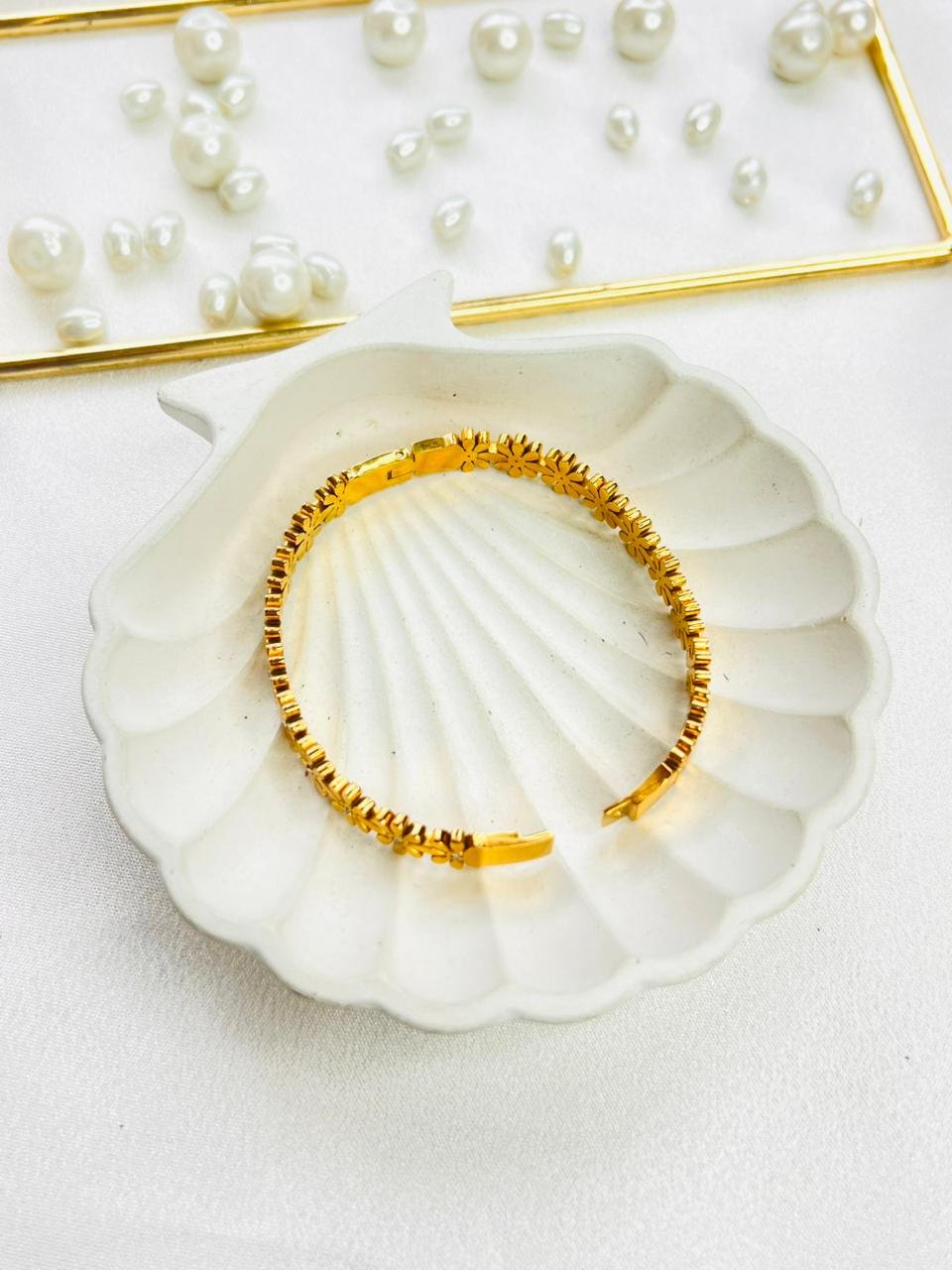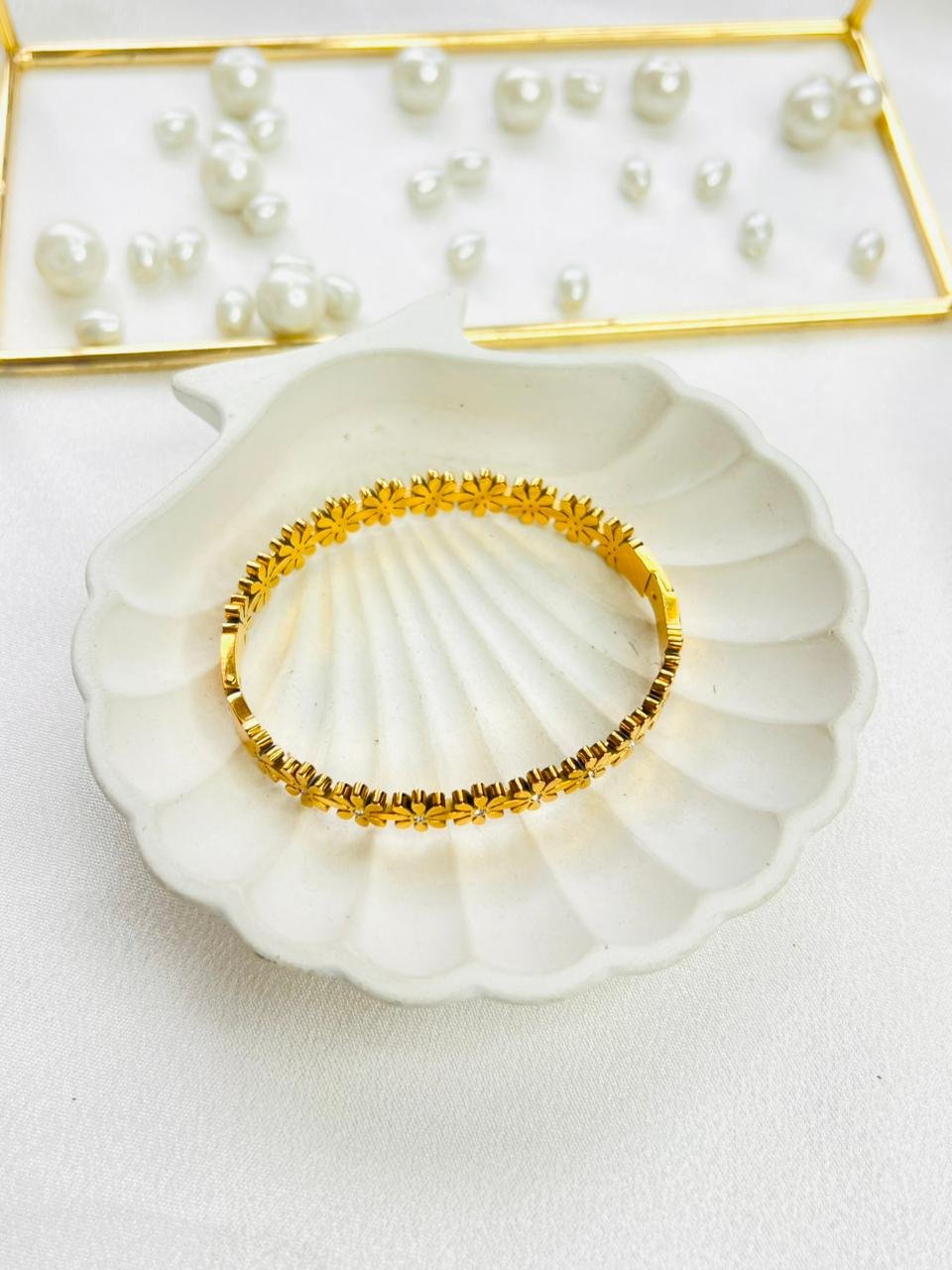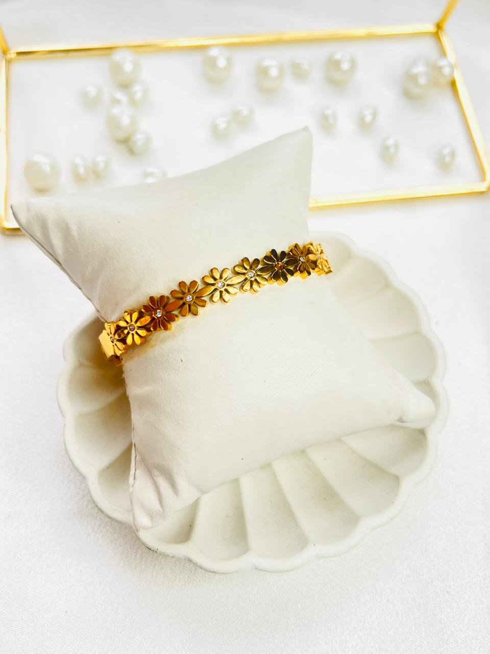 Always store your jewellery in a flat box to avoid abrasive material that can scratch the plating