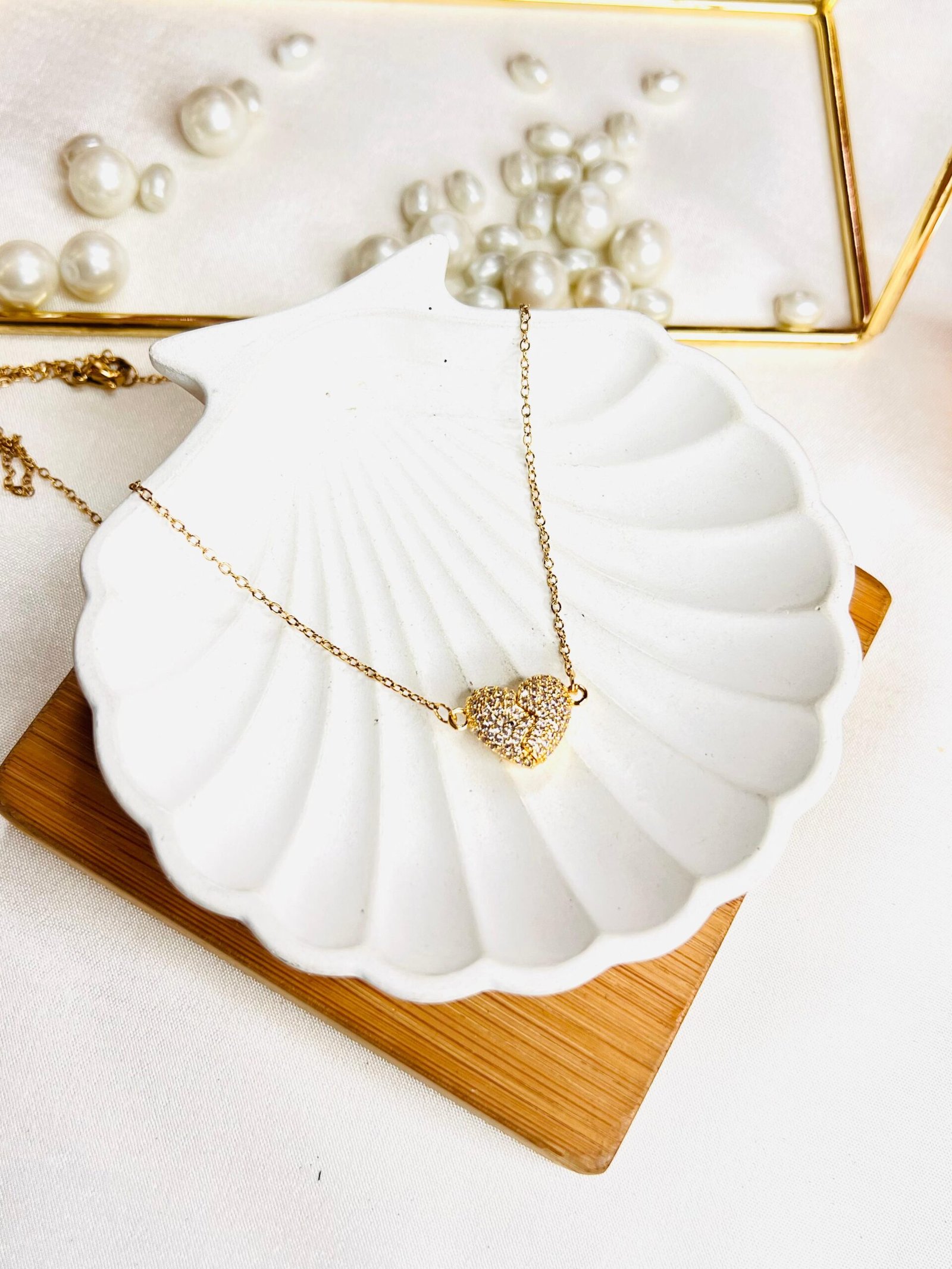 Golden chain featuring a delicate heart design, perfect for adding a touch of romance to any outfit.