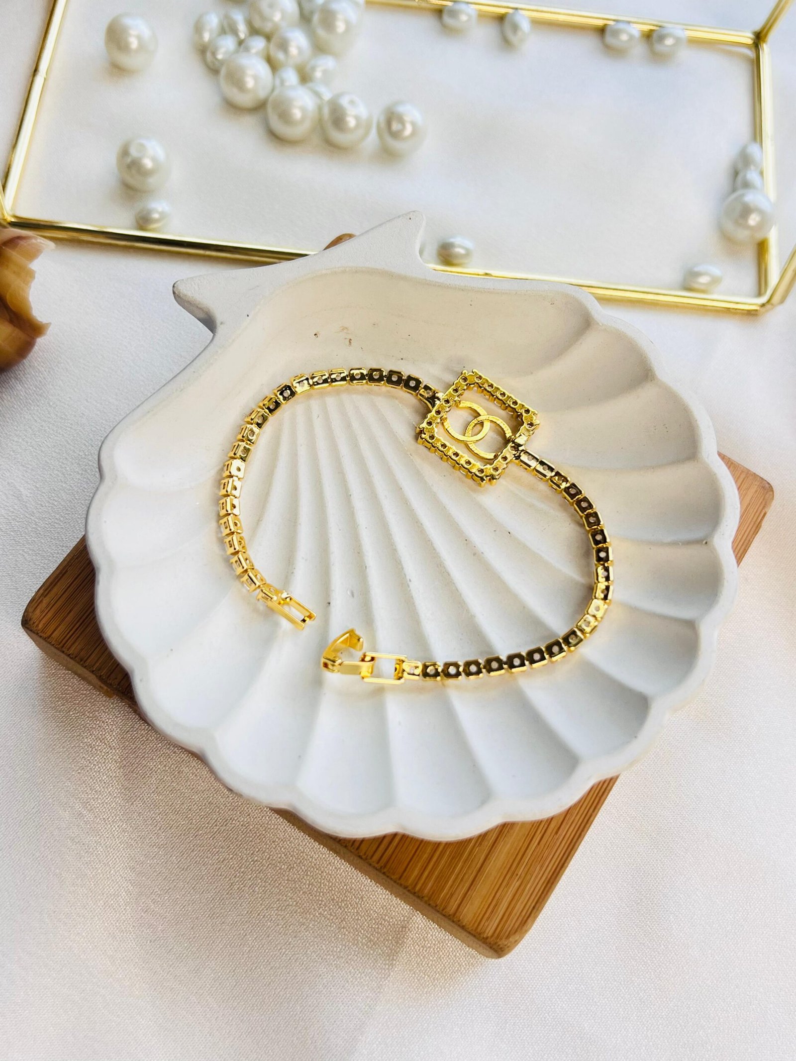 A stunning 18K gold-plated chain bracelet with sleek interlocking links, radiating elegance and everyday versatility. Anti-tarnish and hypoallergenic.