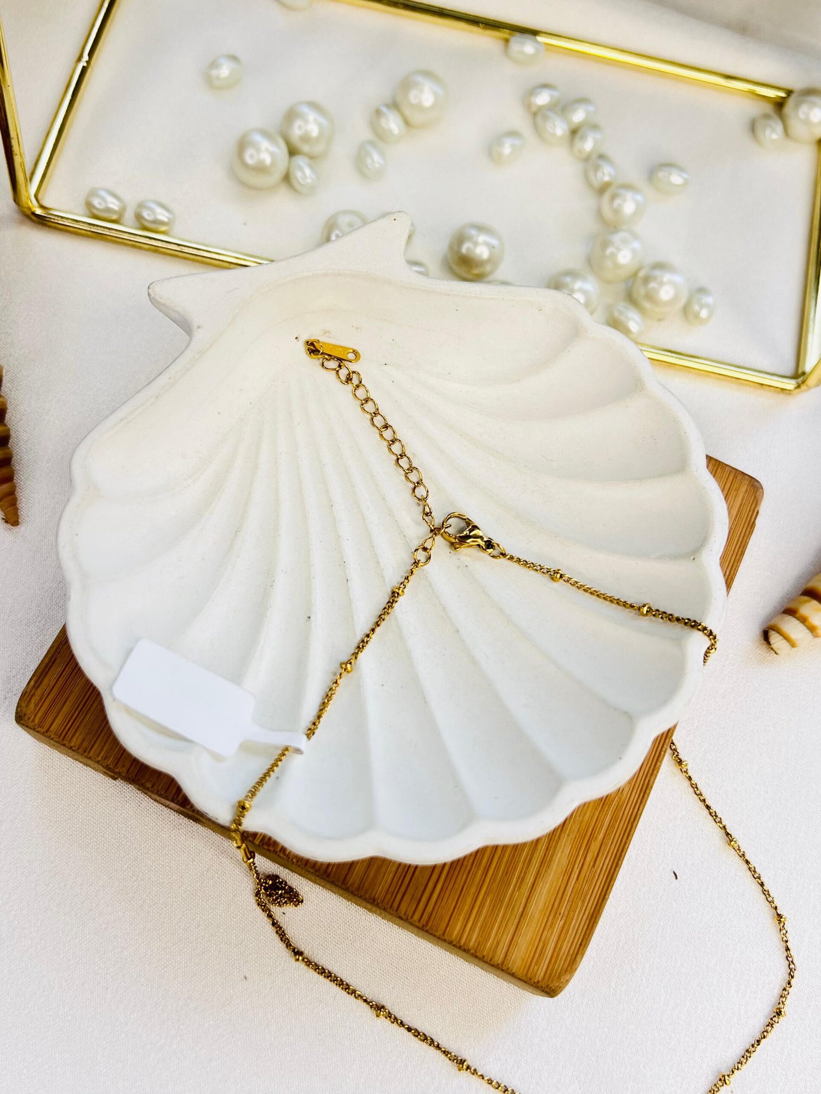 Always store your jewellery in a flat box to avoid abrasive material that can scratch the plating