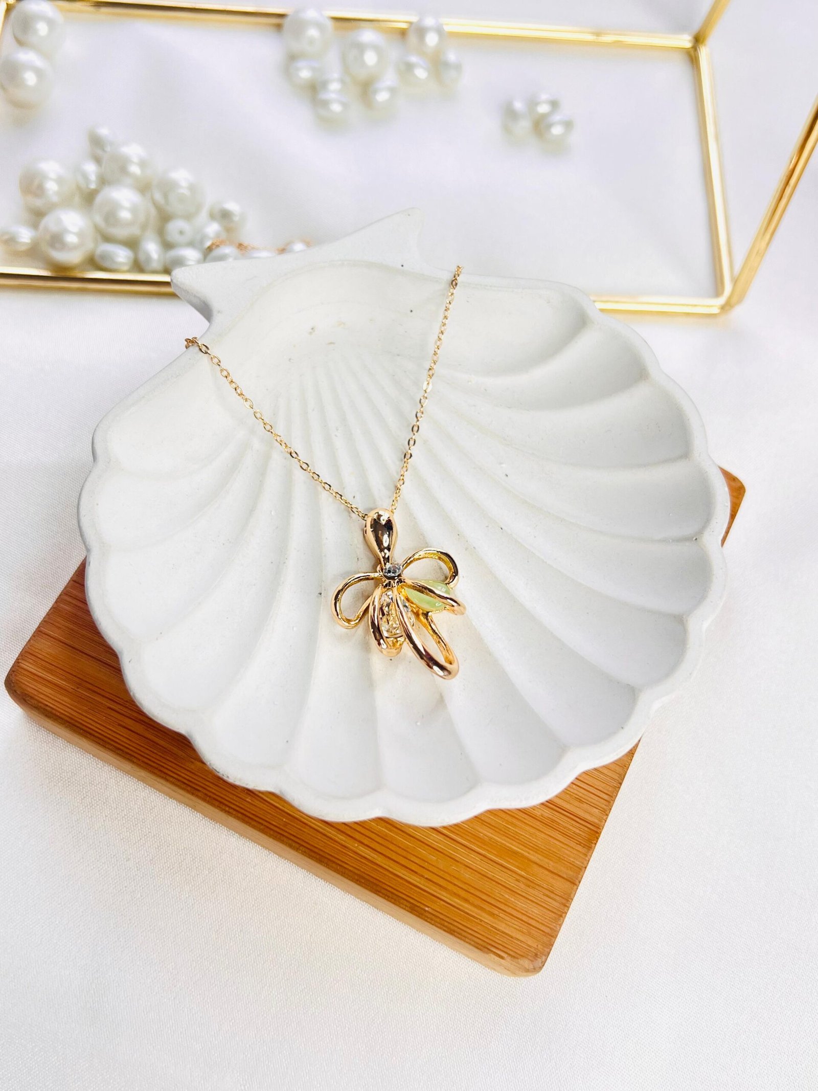 Always store your jewellery in a flat box to avoid abrasive material that can scratch the plating.