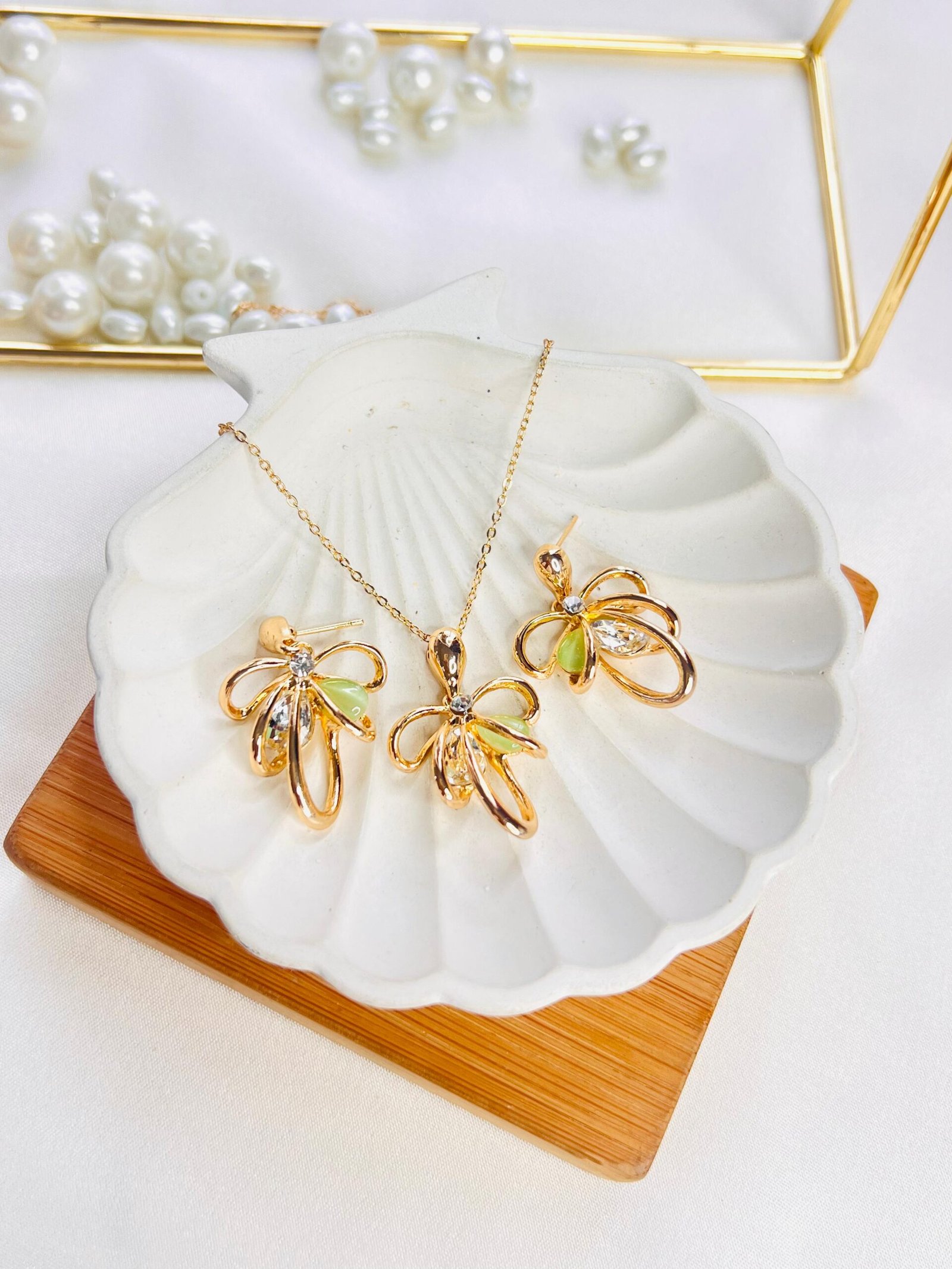 Luxurious flower-inspired earrings and matching chain set, designed to add a touch of regal elegance to any outfit.