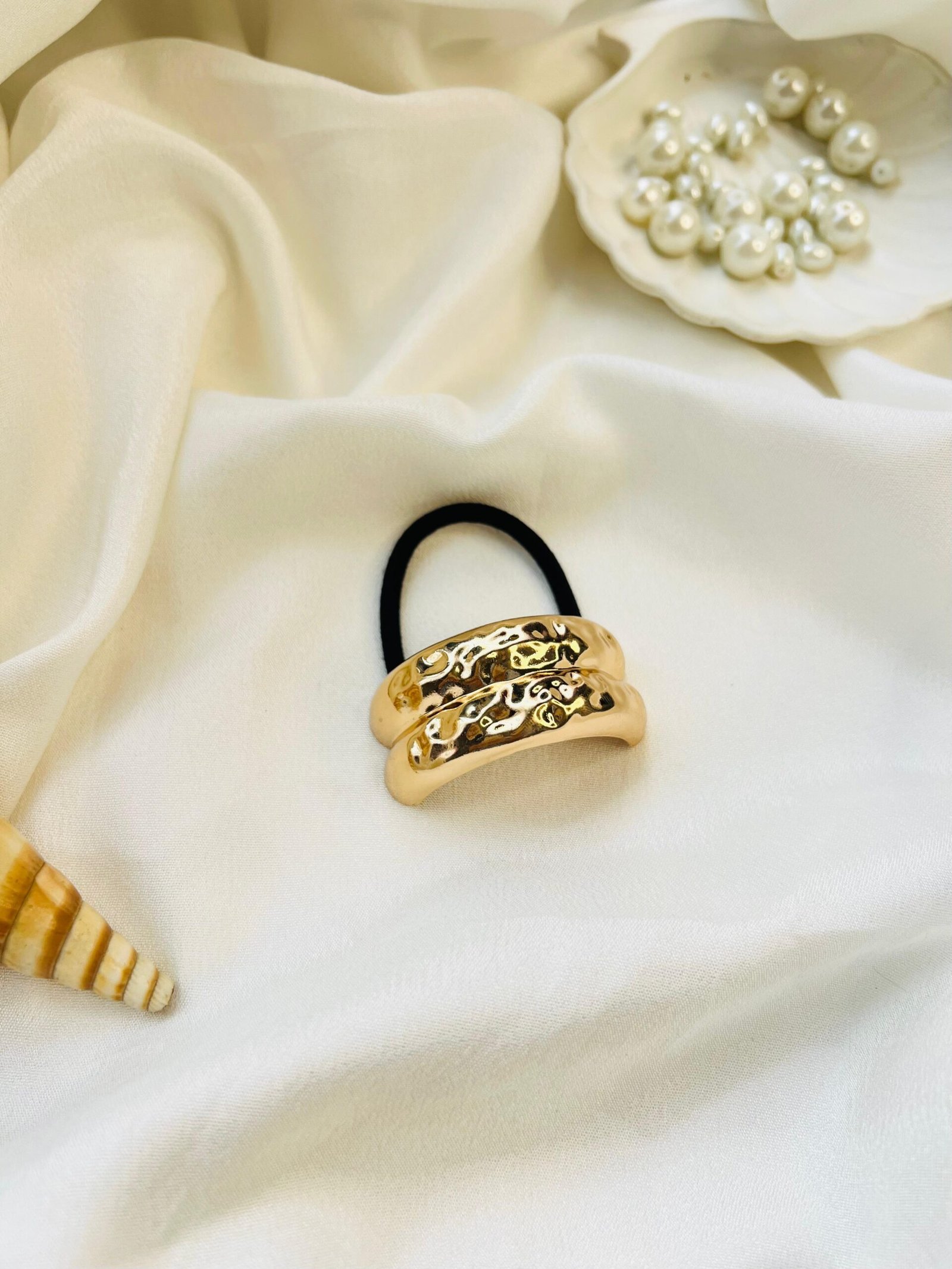 A bold and modern hair tie set featuring fluid, sculpted gold accents- (pair of 2).