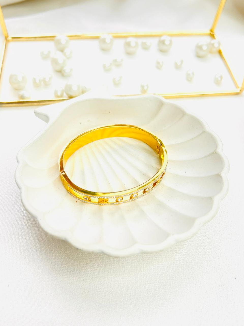 Always store your jewellery in a flat box to avoid abrasive material that can scratch the plating