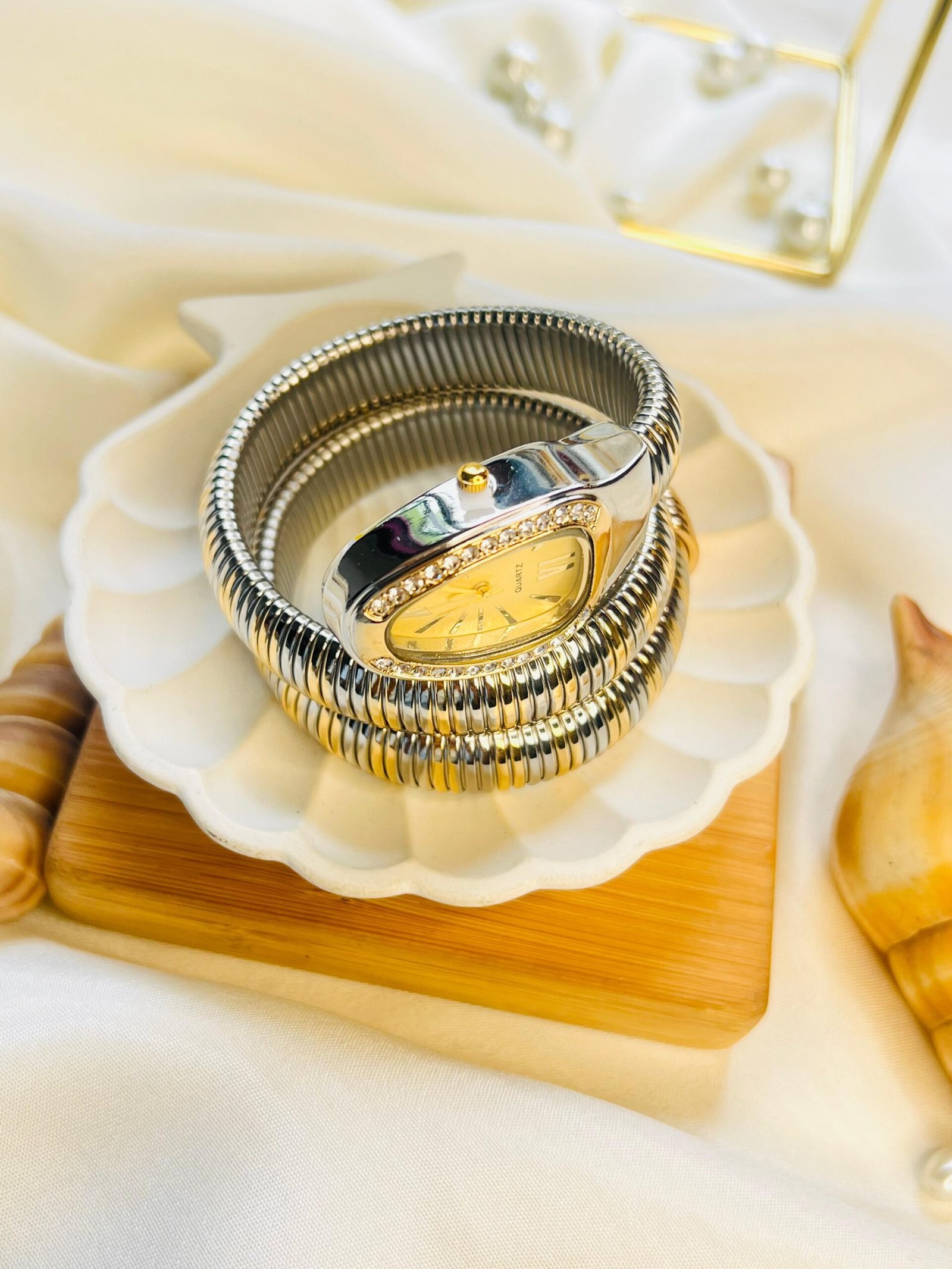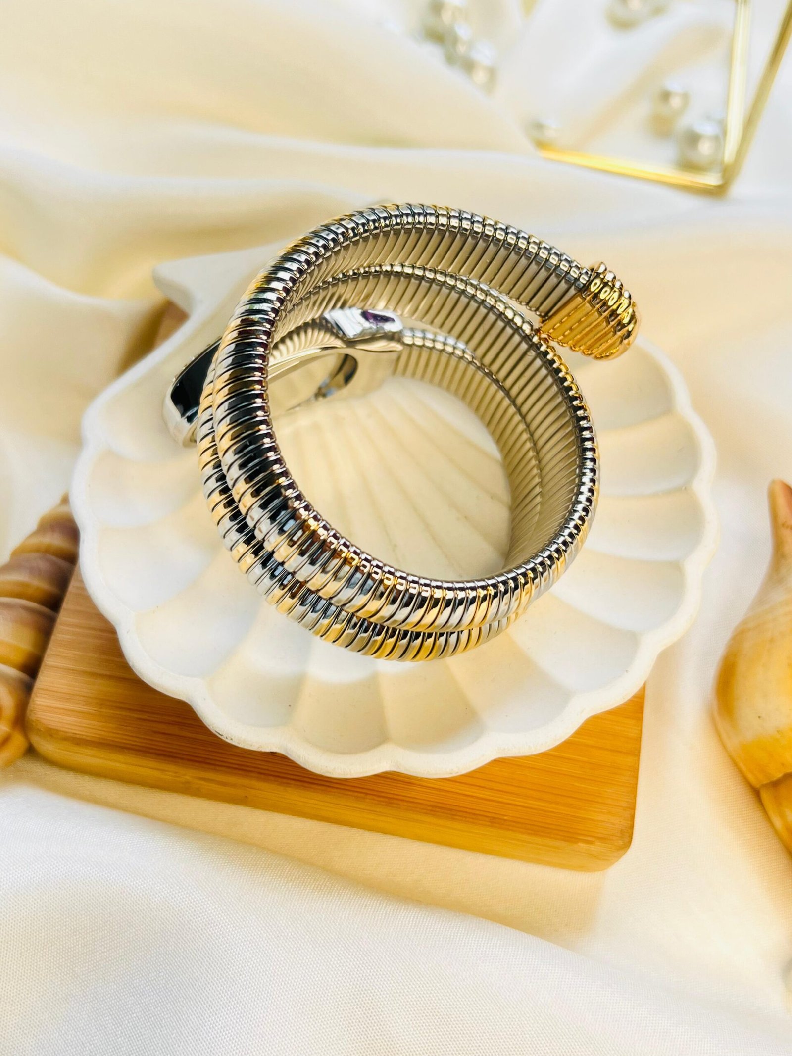 A modern coiled bracelet with a serpent-inspired design, blending elegance and bold style for a statement look.