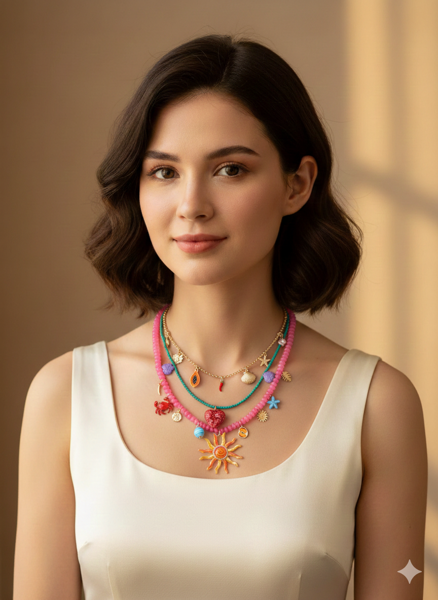Bright, bold, and full of island magic — the Tropical Sunburst Charm Necklace features vibrant beads and playful charms inspired by sunny beaches and tropical adventures. A statement piece that adds instant summer vibes to any look.