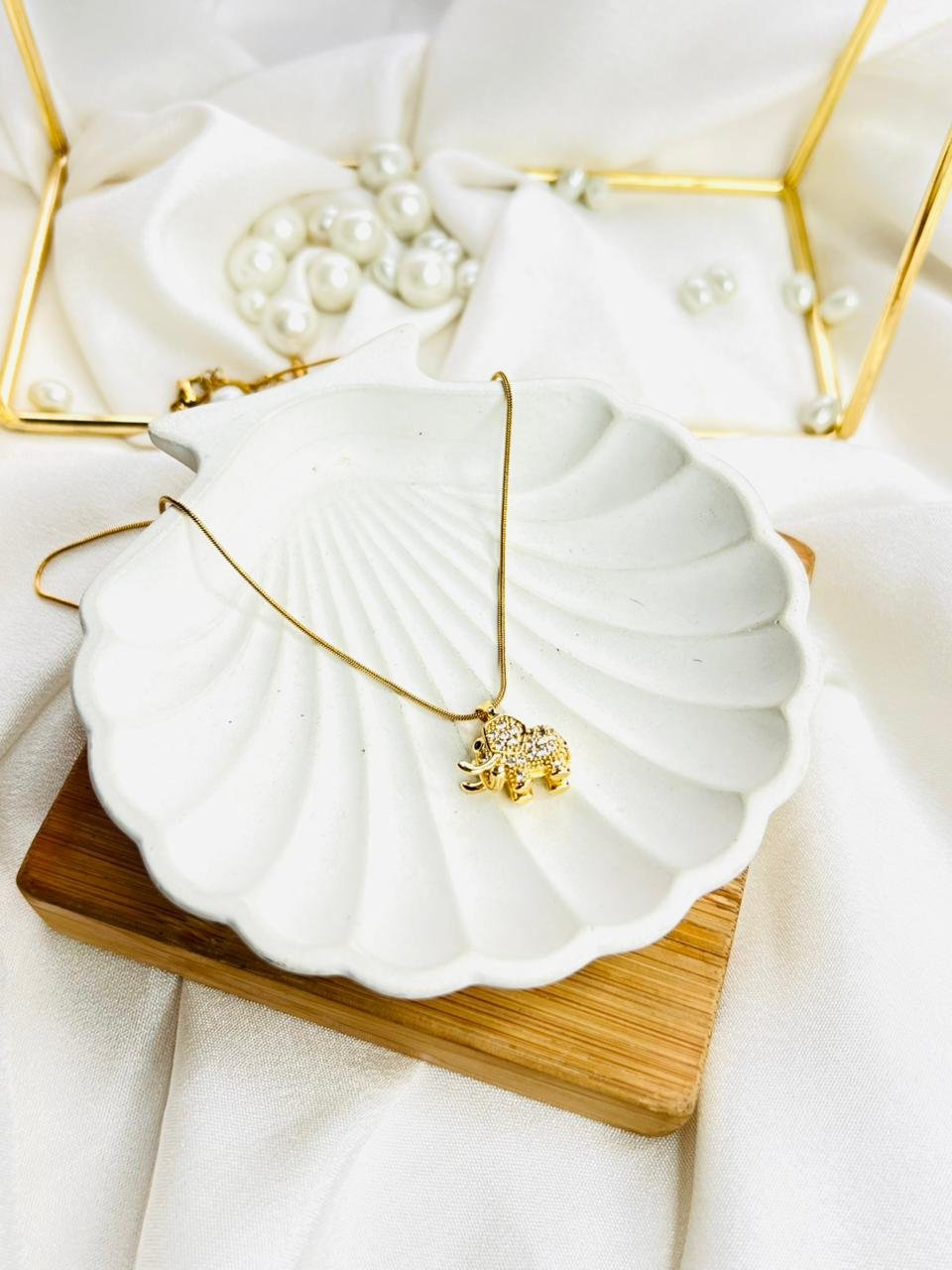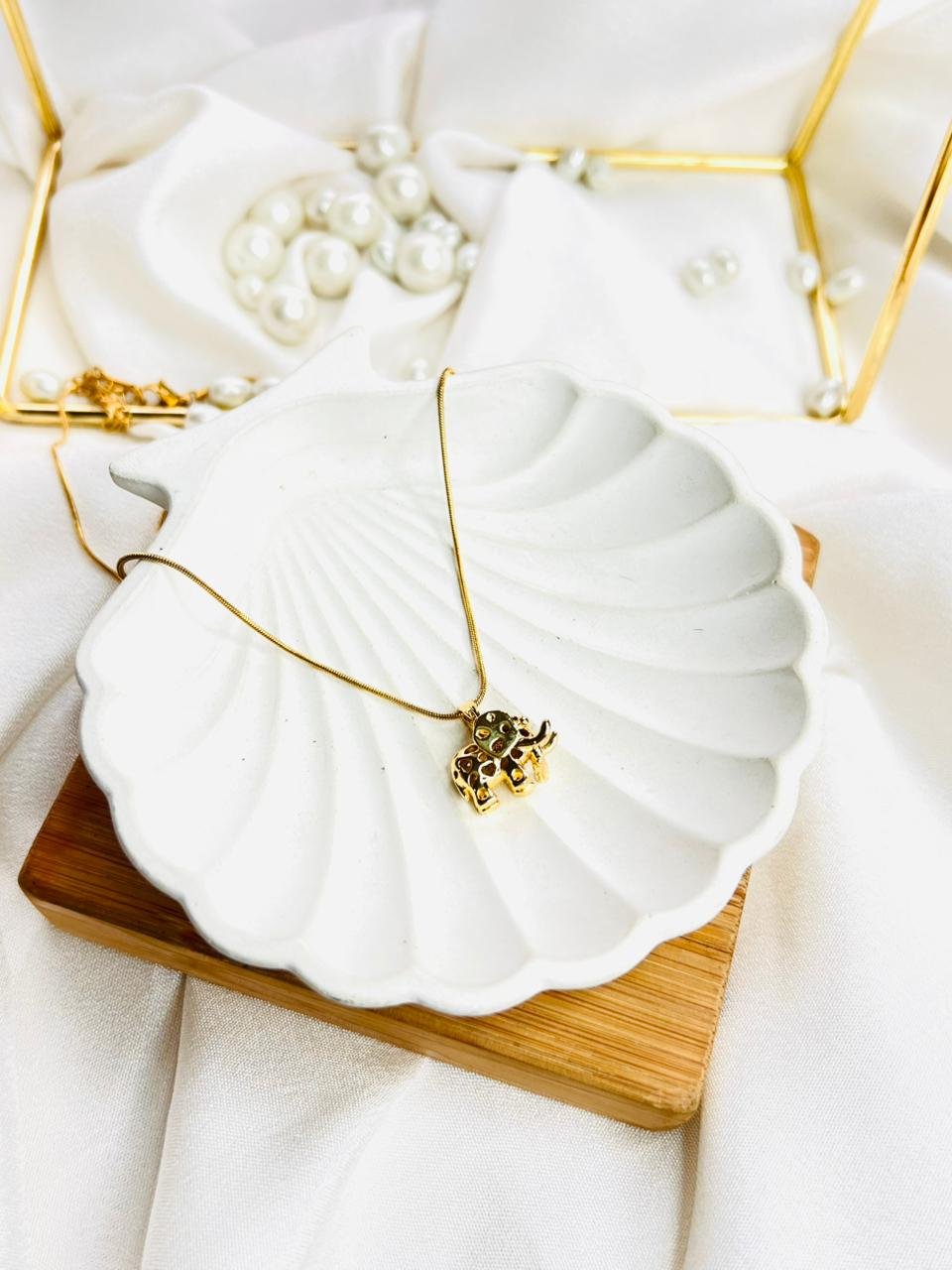 A delicate gold-toned chain featuring a sparkling elephant charm, symbolizing luck and strength. Lightweight, stylish, and perfect for adding a subtle statement to everyday looks.